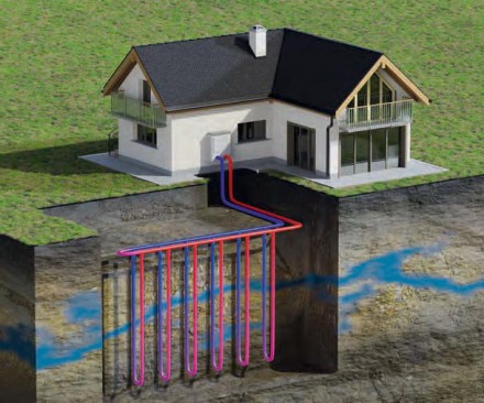 Gruntowe pompy ciepła energię do ogrzewania domu pobierają z gruntu – temperatura panująca na głębokości 10-15 m jest na stałym, dodatnim poziomie. Energia ta przekształcana jest w ciepło, zatem gruntowa pompa ciepła to urządzenie, które wykorzystuje panującą pod ziemią temperaturę i poprzez odpowiednio zaprojektowane oraz wykonane systemy, m.in. odwierty, w których znajdują się rury z roztworem glikolu, doprowadza ciepło do instalacji grzewczej domu. W ten sposób możemy również przygotować ciepłą wodę użytkową oraz latem schłodzić dom – pompa może odbierać ciepło z budynku i oddać je do obiegu dolnego źródła w kolektorze gruntowym. To, co wyróżnia pompy ciepła od tradycyjnych metod ogrzewania to fakt, że do pobierania ciepła wykorzystywana jest energia odnawialna, pochodząca z surowców naturalnych, a ich zasoby są praktycznie niewyczerpane.